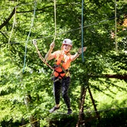 Lanový park ve stromech se skládá ze 32 překážek ve dvou okruzích. Kromě jiných zajímavých lanových překážek se zde můžete ze stromu na strom dopravit na saních nebo na snowboardu. Dále na vás v lanovém parku čeká adrenalinový zážitek v podobě přejezdů na kladce.